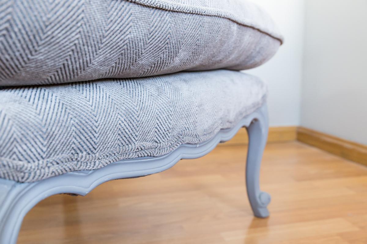 En el caso de esta butaca antigua tuve que limpiar bien las zonas de madera, lijar toda la superficie y pintar.