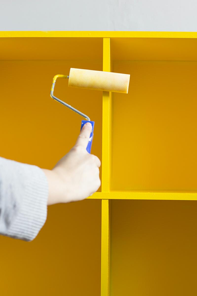 Hoy por fin os puedo enseñar como reformé este mueble. Es una estantería que tenía en mi taller y que he transformado en aparador cambiando solo unas cosillas. En este post te cuento cómo lo he hecho y te enseño el antes y el después. La idea principal era tapar los huecos de la estantería para que no se viese nada de lo que había en ellos, asi que la mejor opción era poner una puerta. Además aproveché para cambiarle el color y pintarla de amarillo, si lees este post entenderás el porqué de este color.