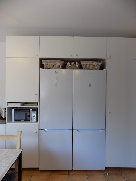 Aquí usados para ocultar el hueco superior del frigorífico.