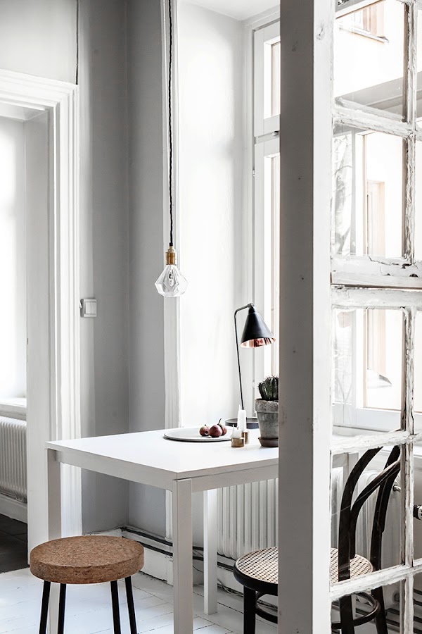 Espacios pequeños y reducidos es la característica principal de este bonito apartamento de estilo escandinavo, una antigua edificación que han restaurado con mucho gusto y adaptado para una vivienda actual, sencilla y a la que no le falta detalle.