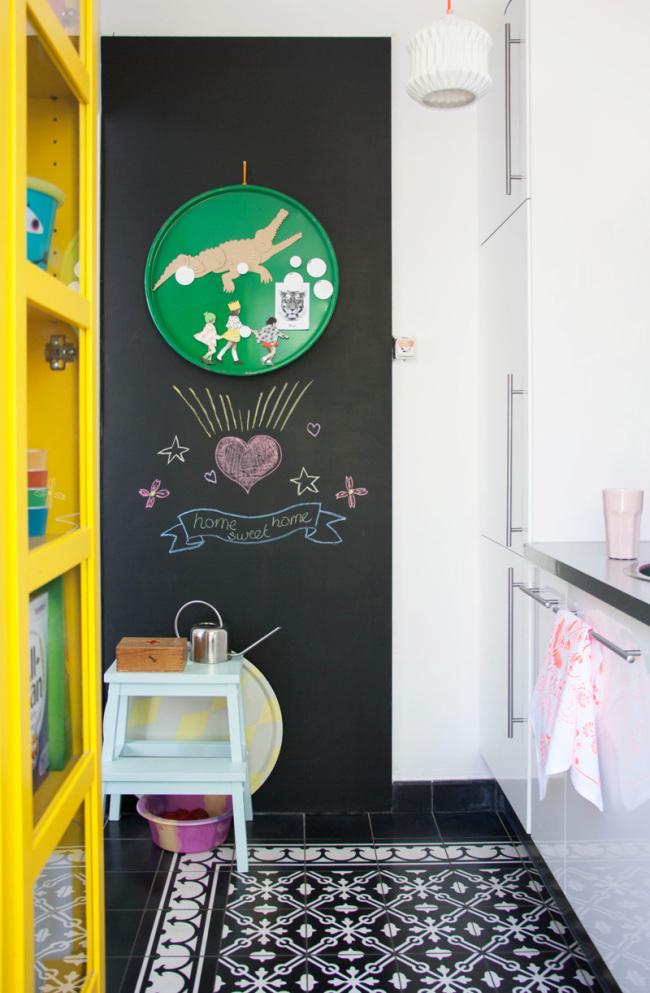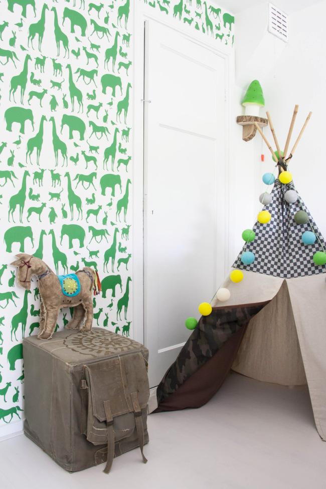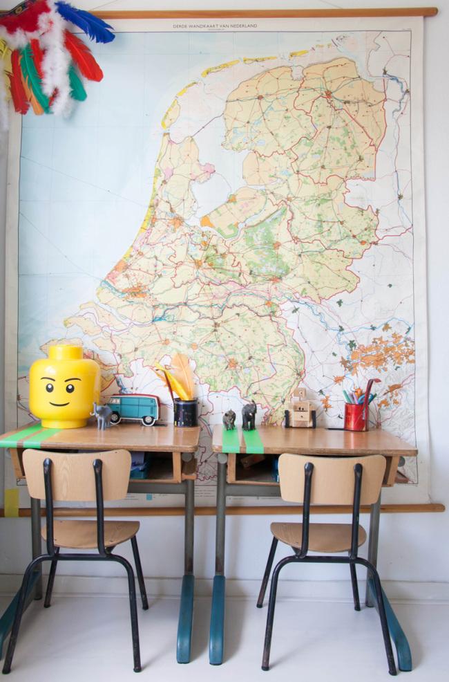 Recuperar viejos pupitres, y disponer de una zona de juego perfecta, es uno de los pilares de esta habitación.