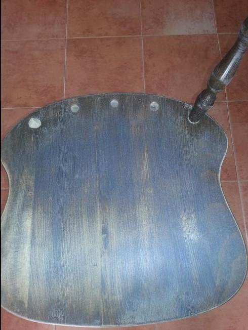 ¿Recordáis que tengo un tema pendiente? Como igual no es así, os refresco la memoria; se trata de aquella la silla Windsor que tenía el respaldo roto, aquella que decidí transformar en taburete…