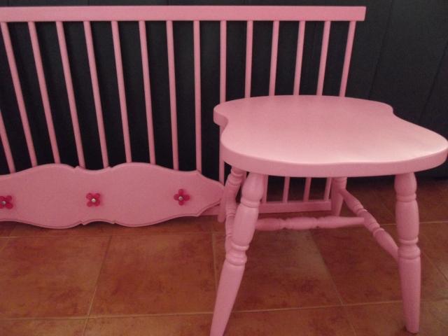 Pues tal como os comentaba ya en aquel post, como los barrotes torneados me inspiran un estilo romántico, rústico, campestre, dulce, infantil…decidí pintarlo de rosa…Así que después de los “trabajos pertinentes” quedó así