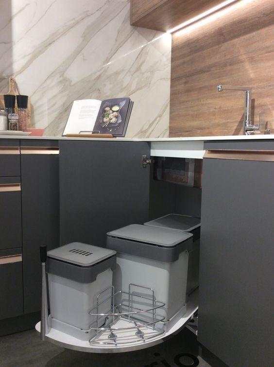 Como componentes de los muebles de cocina también se consideran todos los extraíbles que facilitan el acceso al interior de los módulos y al orden del almacenamiento. Porque en la cocina actual es tan importante lo que se ve como lo que hay en su interior-