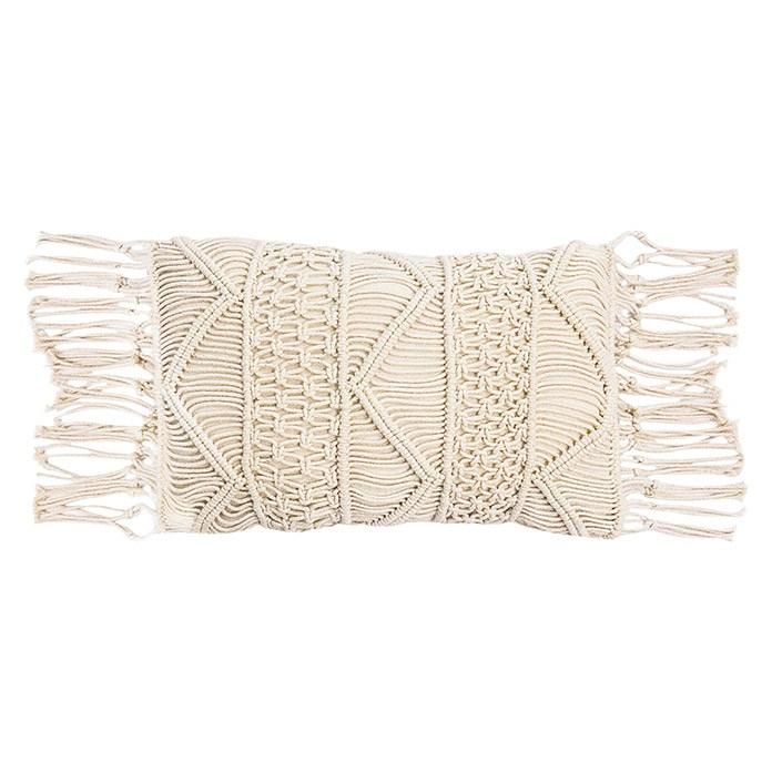 Y no podía dejar de enseñaros algún producto con la tendencia de moda: el macramé. En esta ocasión lo vemos en este cojín de Bauhaus que nos transporta directamente a Ibiza.