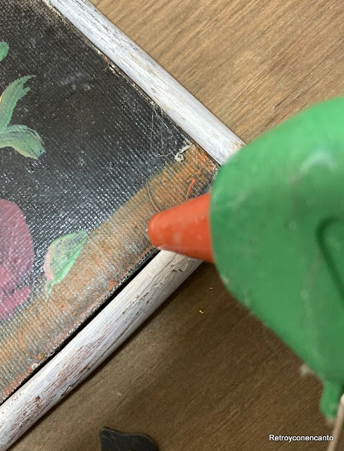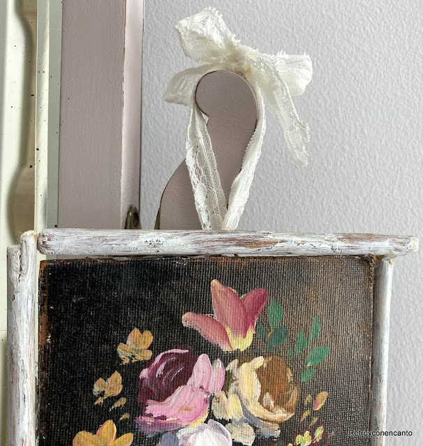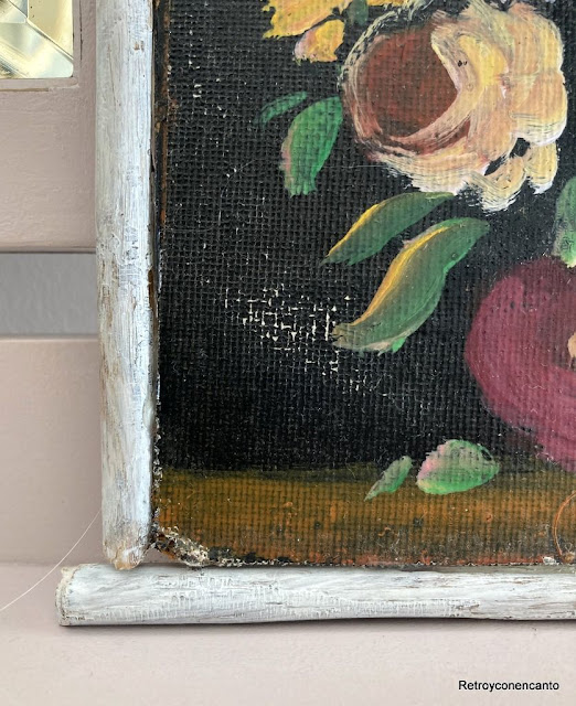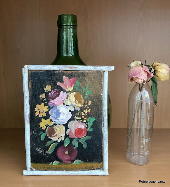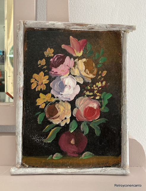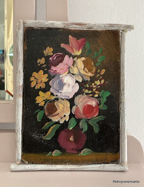 ..., y una pequeña tablita de flores de esas que encontramos en mercadillos, y que para nosotras son el mejor de los tesoros.
