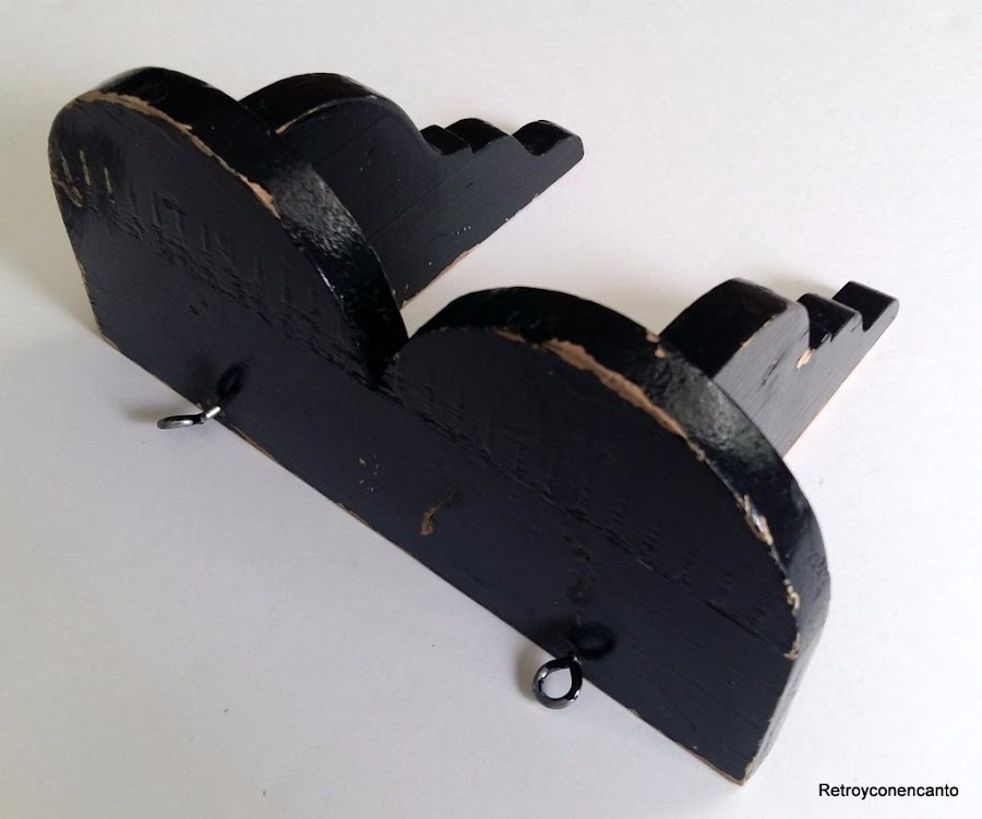 Los famosos cáncamos desesaparecieron, y en su lugar y en la trasera, colocamos estos "chismitos" tan socorridos que sirven para colgar toda clase de pequeños estantes, cuadros...