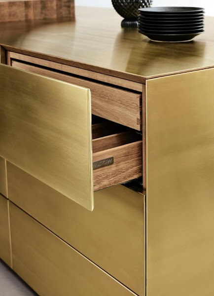 Un modelo de cocina único y refinado que se fabrica en roble natural, roble negro, nogal americano, arce e incluso en metales como el acero inoxidable y el latón.