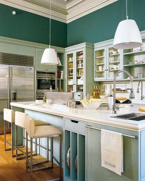 Ojeándola me ha llamado la atención una cocina además de por su elegancia por el color de sus paredes, y claro me he dado cuenta, que es de Deulonder (ya os he hablado de ellos aquí).