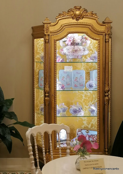 Hace unos días han abierto un precioso establecimiento en nuestro barrio. En realidad, se trata de un traslado a un local más grande. Se trata de una pastelería reconvertida también en cafetería, por eso de la ampliación de espacio. No hemos podido por menos que estrenarla pues, desde fuera, atraía el aroma a deliciosos dulces y la preciosa decoración del espacio, aderezado además con unos adorables uniformes de las chicas que allí trabajan, cuyas cofias y delantales te sitúan en otros tiempos... Ni que decir tiene que, dado que una de nosotras tiene familia en la preciosa ciudad de Ronda, el origen de la "La dulcería de La Rondeña" también supuso un reclamo. Caramelos de violetas, torrijas, miel de romero... Tanta variedad de productos no dejó indiferente a ninguna, pero, como podéis suponer, la belleza del ornato fue lo que hizo que hoy dedicáramos esta entrada a nuestra merienda. Quizás no usaríamos este estilo decorativo en nuestras casas, pero, en su justa medida y según para qué habitación o establecimiento, un toque dorado versallesco lo aceptaríamos de buen gusto...