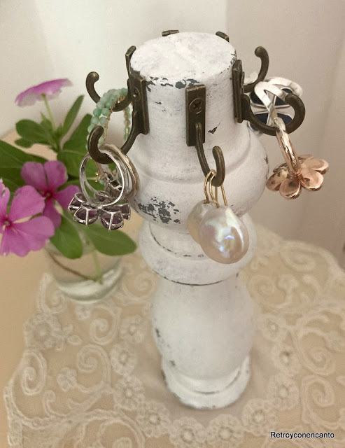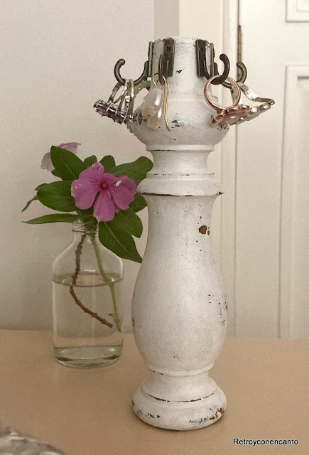 Hemos transformado la olvidada pata de un cabecero en un coqueto soporte para nuestras alhajas.