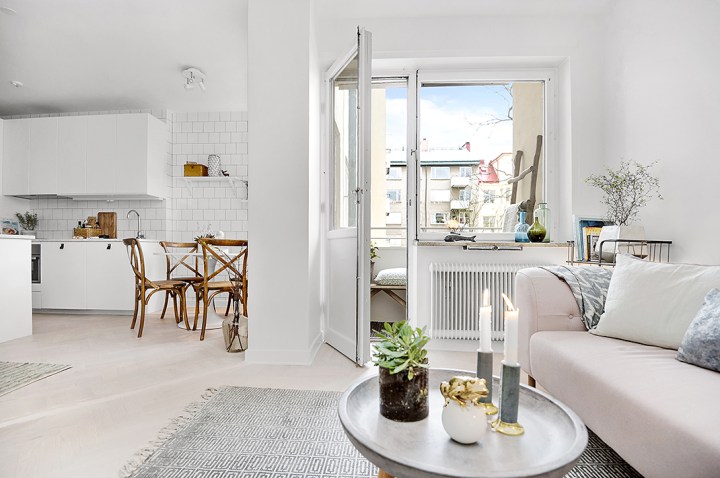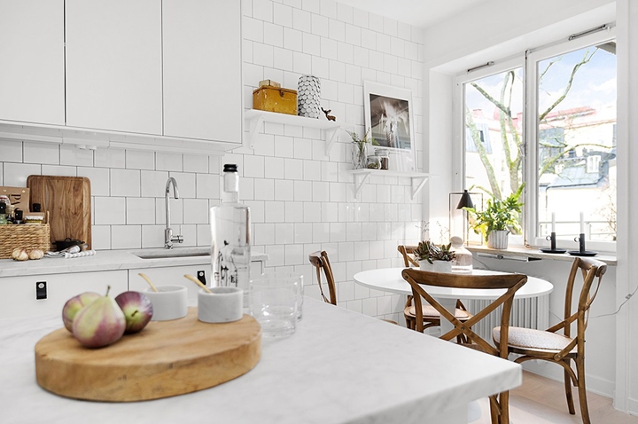 A parte de ser pequeña (que me encantan), tiene una decoración muy cuidada ya que han sabido elegir la opción que nunca va a pasar de moda, si, lo habéis adivinado, han utilizado el binomio blanco-madera que queda perfecto en cualquier casa.