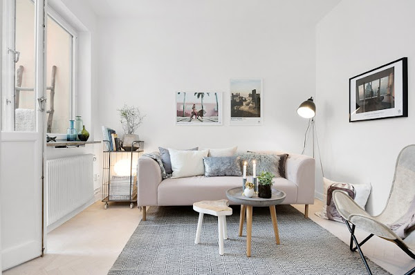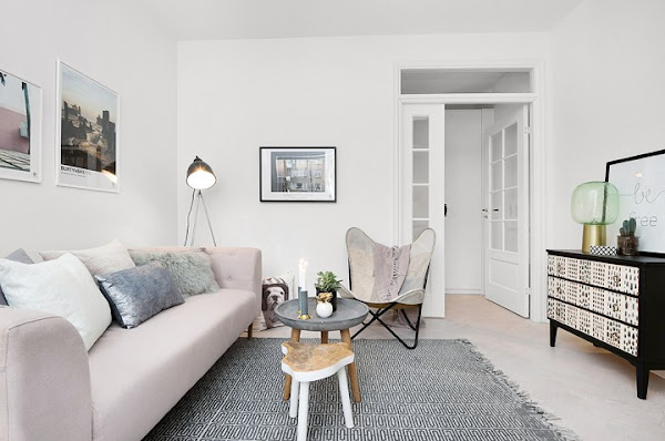 Una casa super elegante y sencilla, aunque entre tu y yo, hubiera optado por un sofá rosa empolvado, no se porque pero tengo un mono de tener uno que ni os cuento!, claro esta que no puedo colocarlo en casa pero me tienen enamorada perdida!.