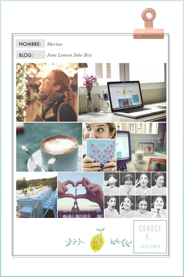 Hoy nueva entrevista en la sección CONOCE A? En este caso se trata de Marina, la blogger que está detrás de JUNE LEMON JUKE BOX un blog del que me confieso fiel seguidora de sus secciones sobre reflexiones, viajes, bueno, realmente de todas sus secciones, lo considero un blog altamente recomendable. A su vez, es una blogger con la que me siento identificada en su búsqueda de la felicidad a través de las ?pequeñas grandes cosas de la vida?. En resumen, no perdamos más tiempo y conozcamos un poquito más a Marina.