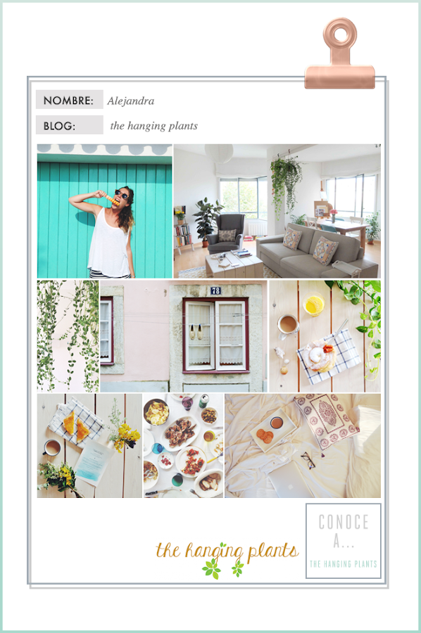 Hoy nueva entrevista en la sección CONOCE A? En este caso se trata de Alejandra, diseñadora gráfica de profesión y blogger. Puedes leerla en THE HANGING PLANTS, un blog sobre todo aquello que le apasiona y le inspira, invitándonos a descubrir su mundo. Hace meses que descubrí su mundo y decidí quedarme ya que me resultó sumamente apetecible, en él muestra sus sentimientos y reflexiones que desde mi punto de vista, son 100% recomendables. En resumen, no perdamos más tiempo y conozcamos un poquito más a Alejandra.