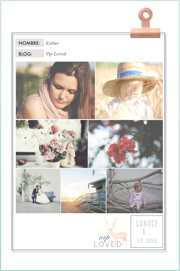 Hoy nueva entrevista en la sección CONOCE A? En este caso se trata de Esther, la fundadora del blog VIP LOVED, una blogger llena de pasión y entusiasmo. Un día como hoy le escribí un mail en le que la invitaba a participar en esta sección, casualidades de la vida, dos semanas después estaba en Gran Canaria, en mi isla, venía con su familia a veranear y tuve la grandísima suerte de conocerla. Esther es exactamente, el reflejo de su blog, dulzura, tranquilidad, ganas de apreciar cada momento y por supuesto disfrutarlo al máximo con su familia. Su blog crea adicción y sus fotografías transmiten belleza. Puedes leerla en VIP LOVED, un blog sobre todo aquello que le apetece compartir, una manera de enseñarnos a vivir la vida sin perdernos ningún detalle. En resumen, no perdamos más tiempo y conozcamos un poquito más a Esther.