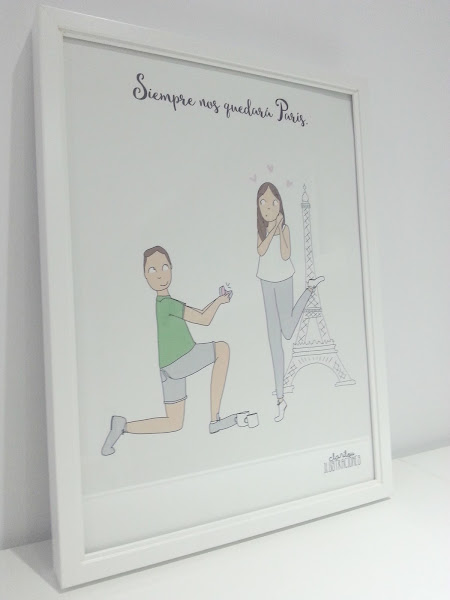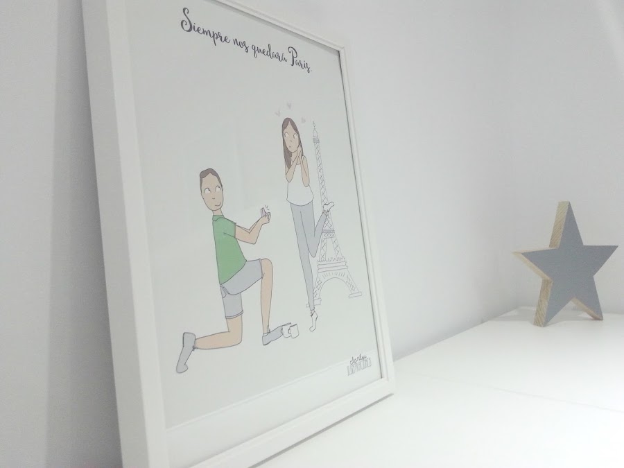 Este cuadro es el regalo por cumplir 10 años juntos y muestra un momentazo de nuestra vida. La pedida en París.