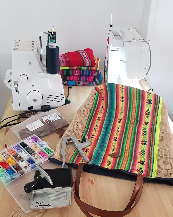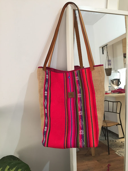 Luego de ése encuentro quedamos en su casa/taller para hacerme dos bolsos, estar ahí, compartir unos mates, jugar con su perro y hablar con su hija, ver como corta, mide, y cose de manera natural, casi sin pensarlo ....es algo que le sale de dentro, es una artesana, una artista y por supuesto es una GRAN DISEÑADORA.