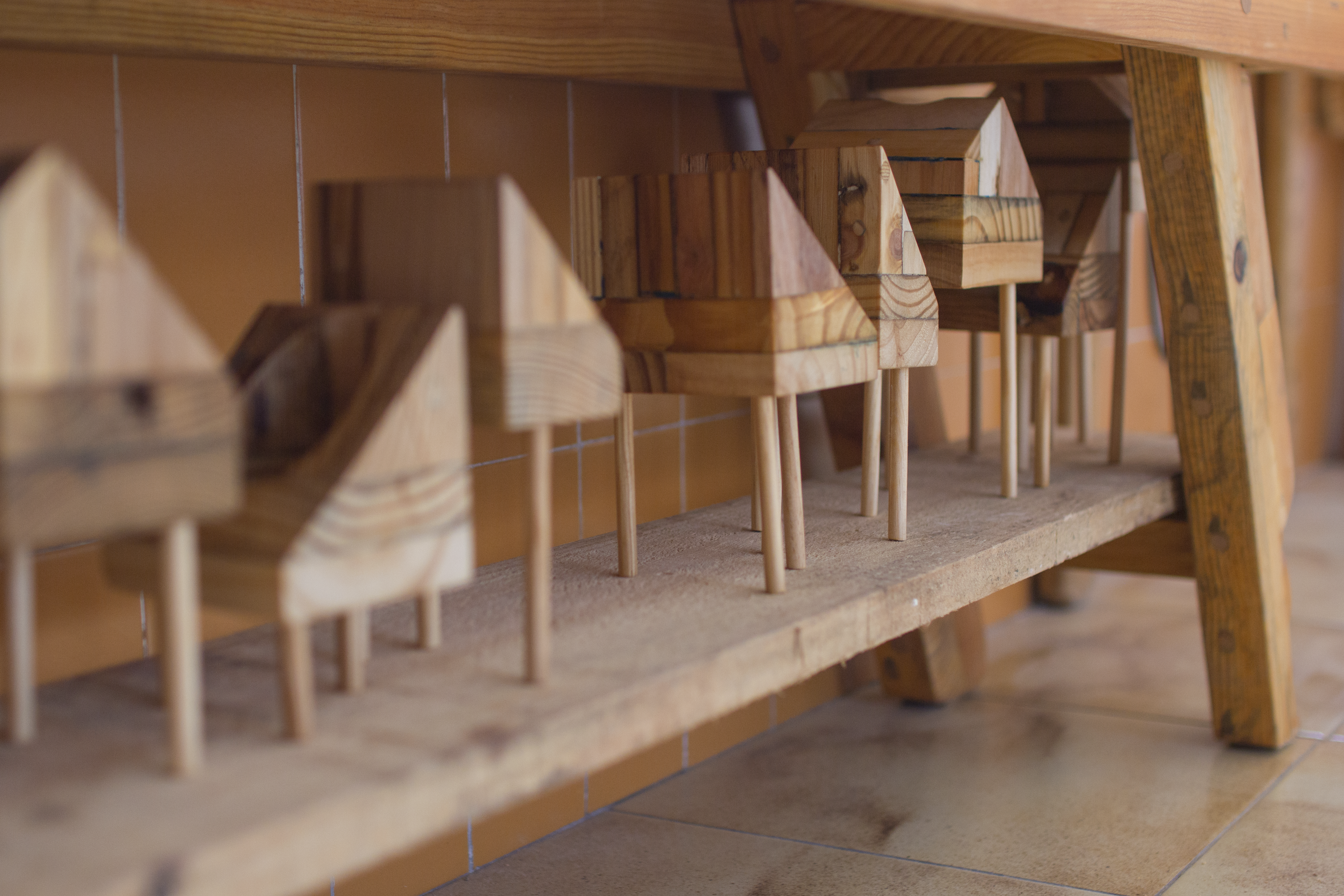 Ximo: Yo empecé de forma casual. Gran parte de mis años de Bellas Artes coincidieron con el derribo y la construcción de la nueva facultad, ésto junto a la necesidad de encontrar un material útil me llevó a la madera, que es algo que se utiliza mucho en construcción, que se deshecha y que todavía puede ser fácilmente trabajado. Poco a poco fui justificando más el uso de un material efímero, ancestral, con capacidad de envejecer y que en la ciudad se encuentra fácilmente como residuo. A partir de ahí comienza mi preferencia por este material y por una forma concreta de trabajarlo, que tiene algo de ritual...