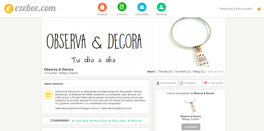 E. ezebee.com: Como os decíamos, ezebee.com es un lugar abierto a todos los sectores y productos. Quien quiera puede crear su tienda online y hay todo tipo de productos, desde moda, cosas para niños, complementos, artesanías, comida ecológica, diseñadores web, fotógrafos, ¡y mucha decoración y DIY!