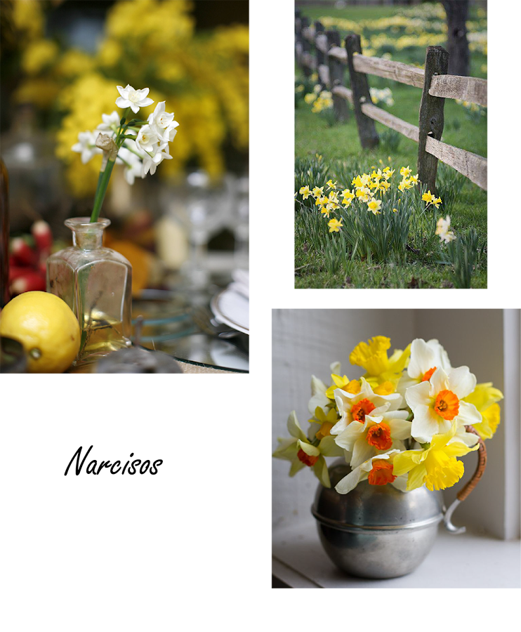 Según Davison, nos gustan los Narcisos y margaritas en tonos en tonos azules, amarillos y blancos. Las Lilas y Ranúnculus en colores como el lavanda y los encarnados, la Verbena o la Cala por sus colores blancos, amarillos o verdes y los Guisantes de Olor (que tengo que confesar que los he conocido por ella) por el despliegue de rosas brillantes.