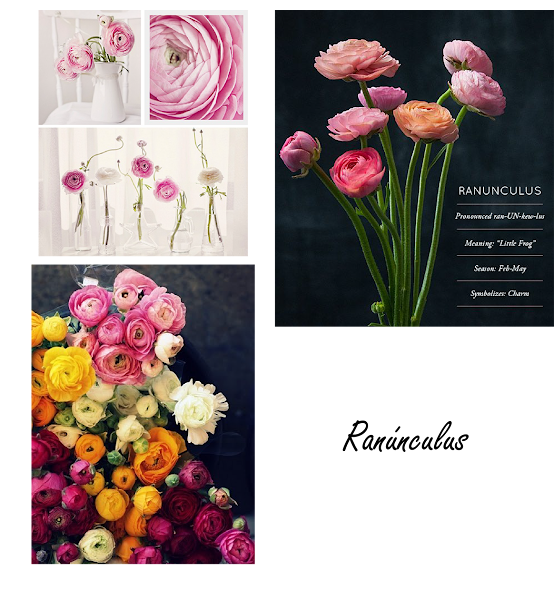 Según Davison, nos gustan los Narcisos y margaritas en tonos en tonos azules, amarillos y blancos. Las Lilas y Ranúnculus en colores como el lavanda y los encarnados, la Verbena o la Cala por sus colores blancos, amarillos o verdes y los Guisantes de Olor (que tengo que confesar que los he conocido por ella) por el despliegue de rosas brillantes.