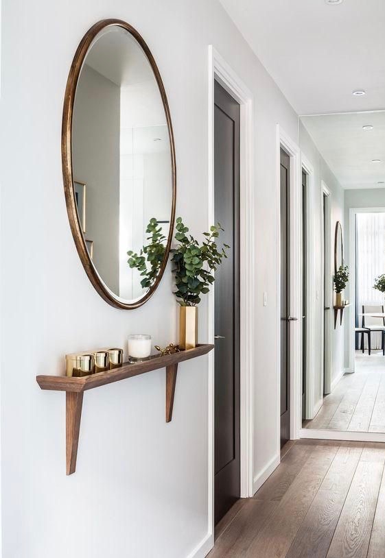 Puedes colocar un espejo redondo para hacer circular el chi si lo primero que nos encontramos es una pared pequeña, o un pasillo. Recuerda que nunca de forma directa a la puerta de entrada.