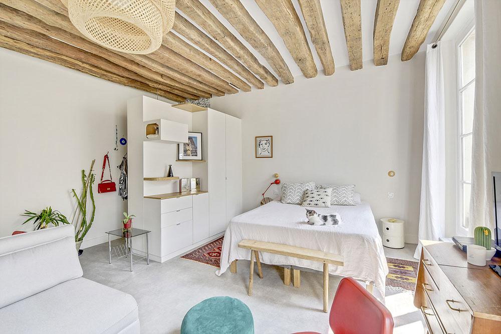 La decoración nórdica es una de las claves de este Minipiso, colores neutros, materiales nobles, ventanales despejados y todo diáfano … espacios abiertos, algo que suelo repetir en contadas ocasiones, eliminar tabiques!!! ampliar el horizonte y unificar estancias. Inspírate!!!