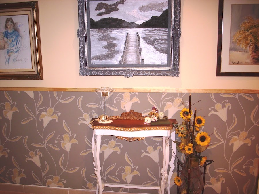 Bueno, creo que queda muy bien en el lugar que se ha elegido para colocarla y combina a la perfección con los tonos de la pared y el resto de detalles.