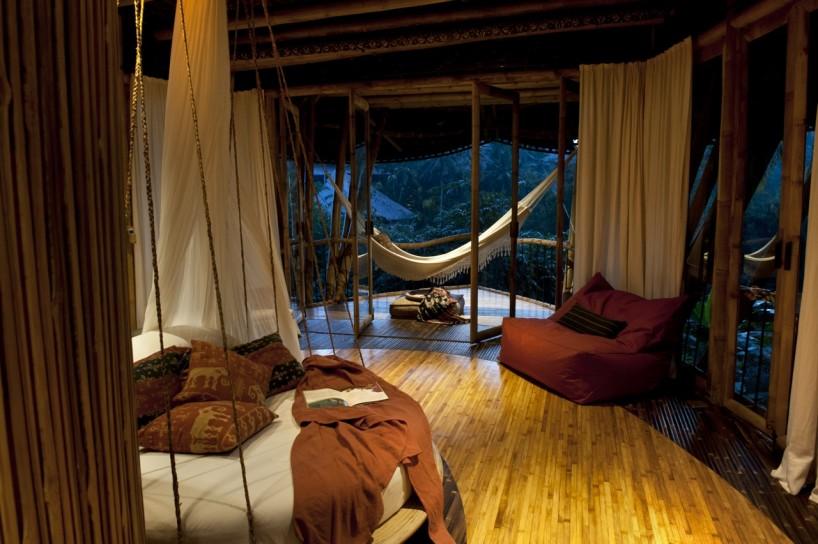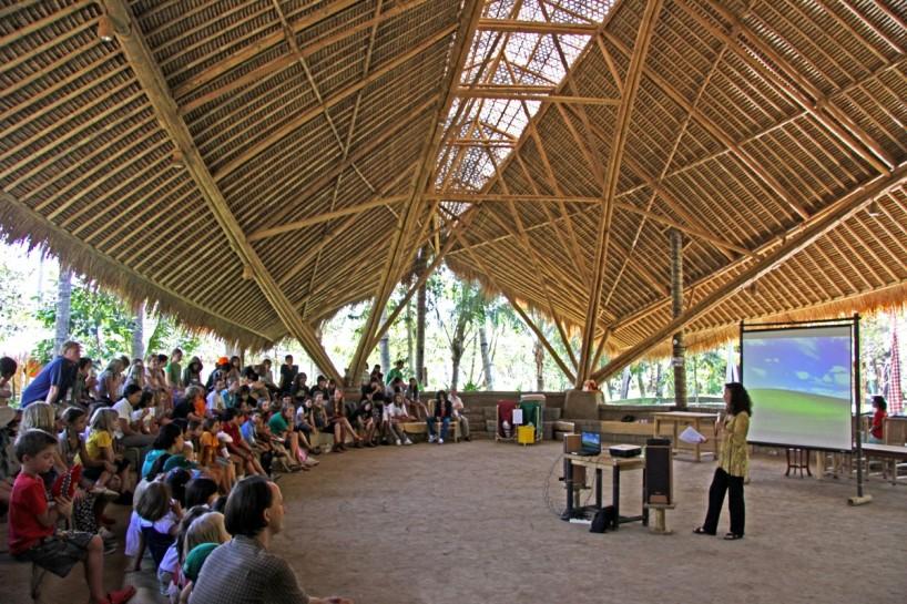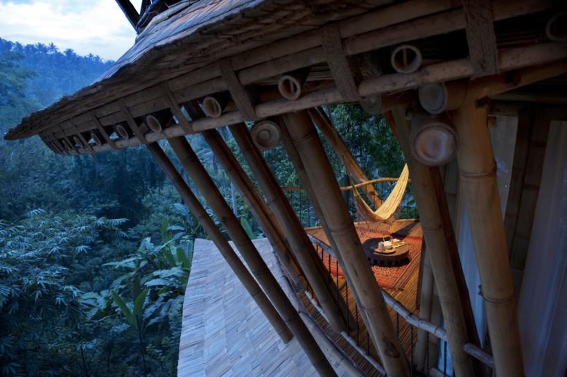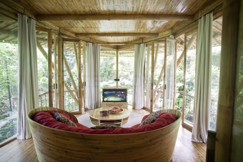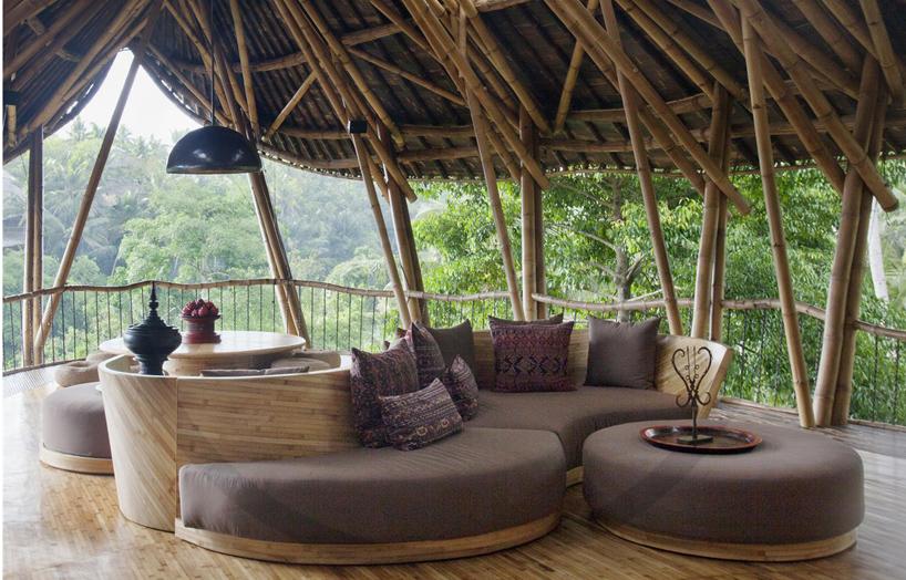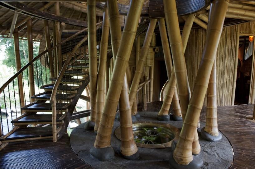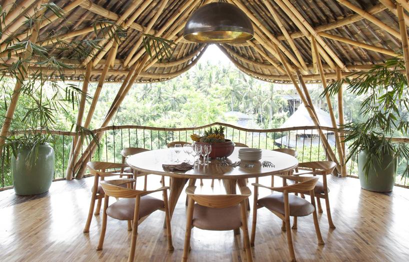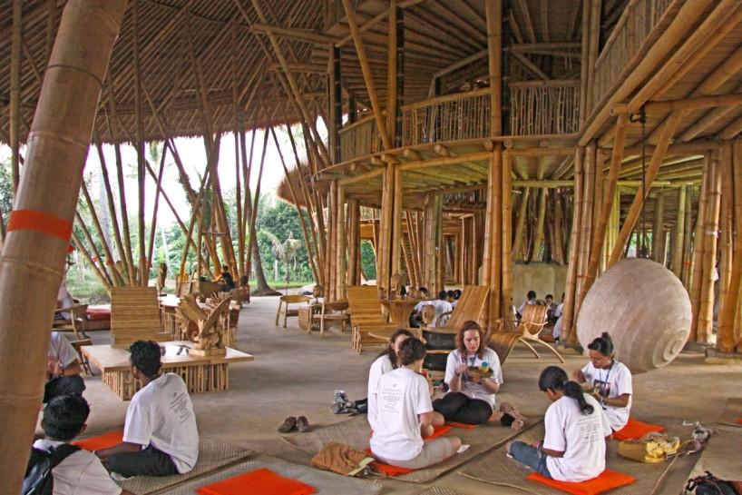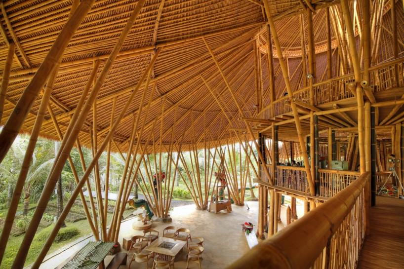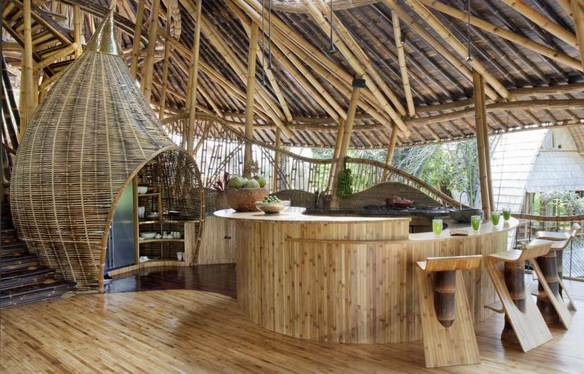 Seguramente te habrás fijado en que además de la arquitectura, muchas de las piezas que componen el interiorismo, también están creadas por ellos mismos con bambú: sillas, mesas, sofás, taburetes, lámparas y un largo etcétera. Hasta las estructuras de las puertas y ventanas se hacen con este mismo material ¡wow!