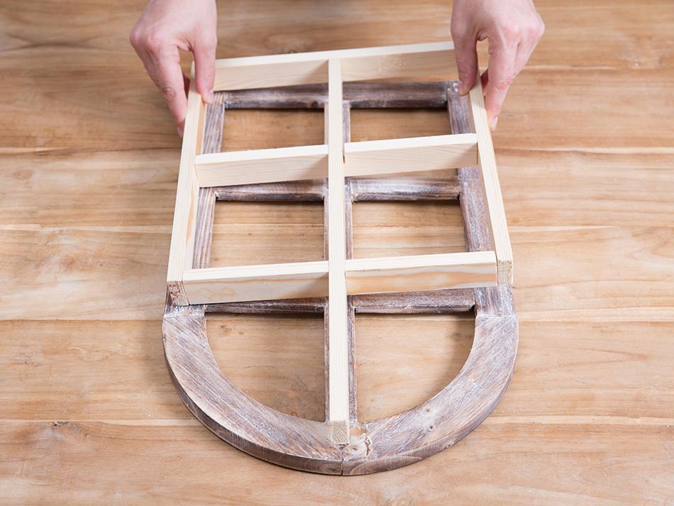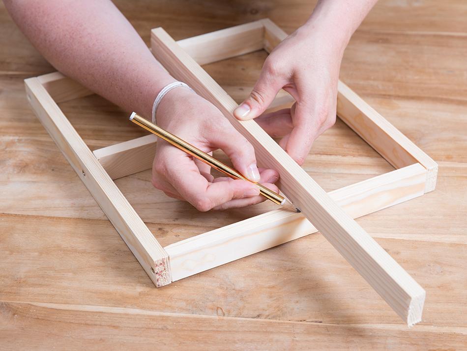 En este caso, la estructura lleva cuatro listones que componen el marco exterior y dos piezas en cruz que van sujetas en el interior.