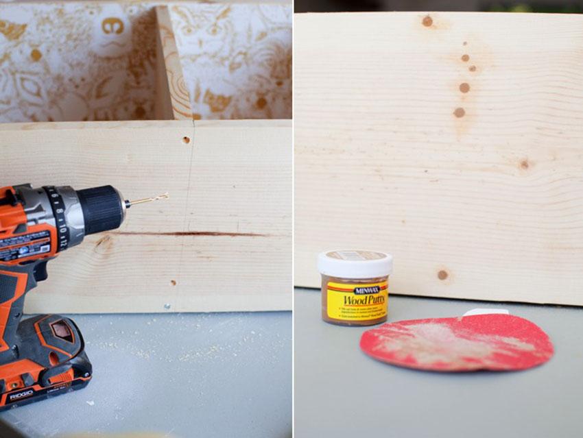 Una vez tengas todas las piezas de madera cortadas al tamaño adecuado, tendrás que ensamblar unas con otras para formar el contenedor de libros. Fíjalas con tornillos de cabeza avellanada y después tápalos con un poco de masilla de madera.