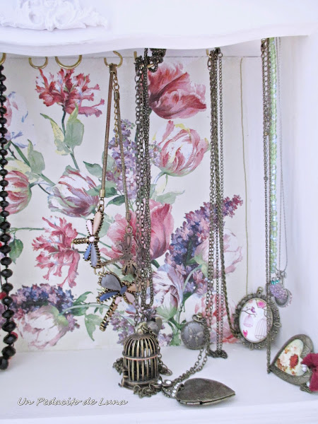 Ahora si está listo para albergar mis cadenas, alguna bisutería vintage que he ido reuniendo y los collarcitos más delicados que se enredan con facilidad.