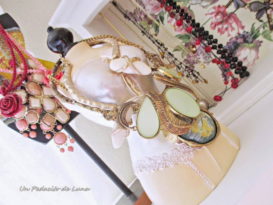 Este maniquí me lo regaló una buena amiga, en él también descansan alegremente algunos abalorios.