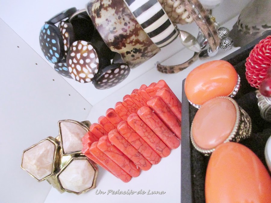 Con el paso de los años he ido acumulando mucha cosa, collares, pulseras, anillos, cadenitas, cadenotas, pendientes......algunas cosas que me encantan, otras que por su color o forma concretan mucho su puesta en escena, otras muy versátiles y que salen mucho a la luz.....