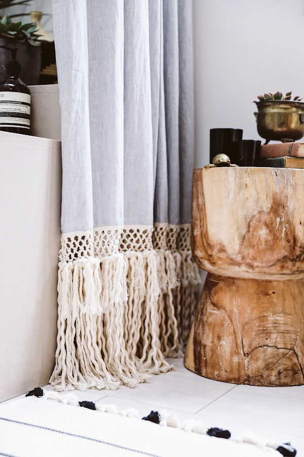 Las cortinas elegidas son de lino lavado, en el corteinglés podéis encontrar esta en color crudo y natural.