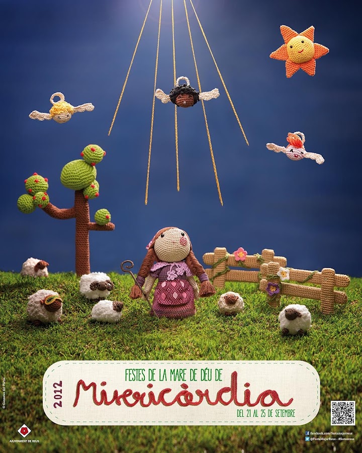 Hay de todo como he comentado antes , hasta carteles de fiestas mayores , esta tan de moda hacer ganchillo que este año el cartel de fiestas de mi ciudad es un montaje de figuras hechas ha ganchillo , que ha estado realizado por un conocido grupo chicas aficionadas al ganchillo de mi ciudad conocidas como " Les Ganxetes del Portia ".
