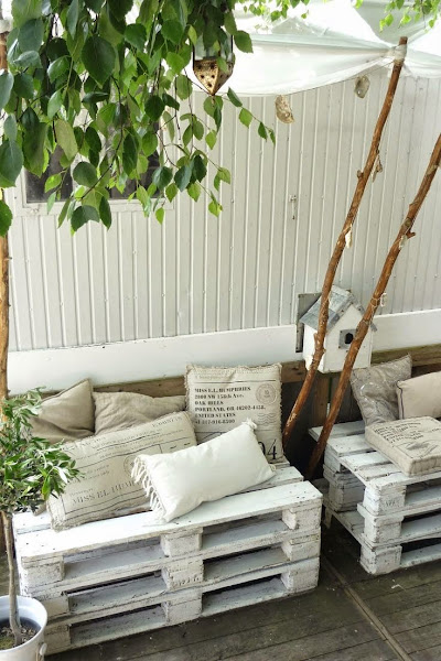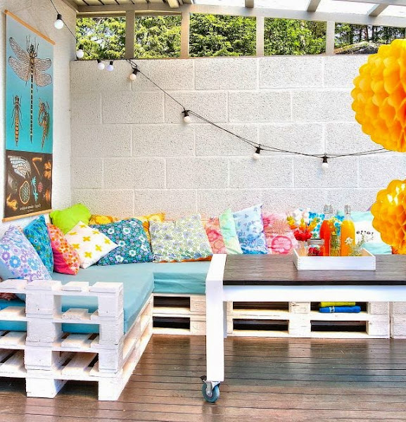 La verdad es que, como podéis ver en las fotografías, con unos palets podemos hacer que nuestras terrazas o jardines queden espectaculares. Podemos hacer zonas de relax increíbles, sillones muy cómodos, mesas, jardineras, jardines verticales, maceteros, barras de bar, paredes decorativas..... lo que nuestra imaginación nos deje. Yo por ejemplo para mi terraza aproveche unos palets que conseguí en una obra cercana y lo que hice fue cubrir la pared con las tablas de los palets. Si quieres ver como lo hice solo tienes que pinchar aquí: "Antes y después: Una pared hecha con palets". Por otro lado está mi cuñada, que es una verdadera especialista de poner palets en la terraza. Ella ha puesto banquitos y mesas que ha hecho ella misma. A todo el mundo le encanta ir a su terracita.