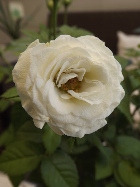 Ahora ya en nada se le parece. Ha empezado de nuevo a florecer tras su pequeña poda y ya asoma la primera de sus nuevas rosas blancas...Preciosaaaaaaaaaaaaaaaaaaaaaaa