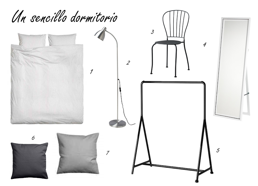 1.-Funda nórdica rayas 2.-Lámpara Lersta 3.-Silla Läckö 4.-Espejo Harran