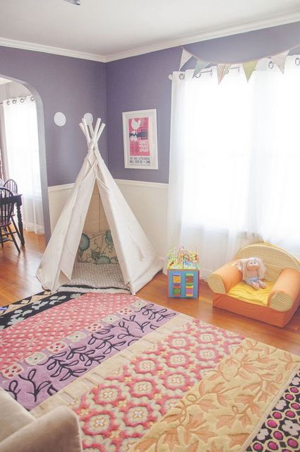Una buena idea también es disponer de una alfombra y cojines de suelo, porque ya se sabe que a los críos les encanta tirarse a jugar por el suelo y de esa manera evitamos que se enfríen.