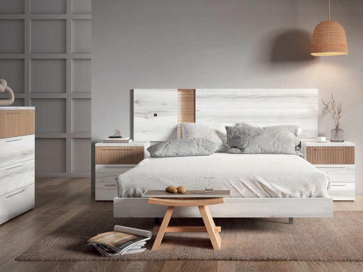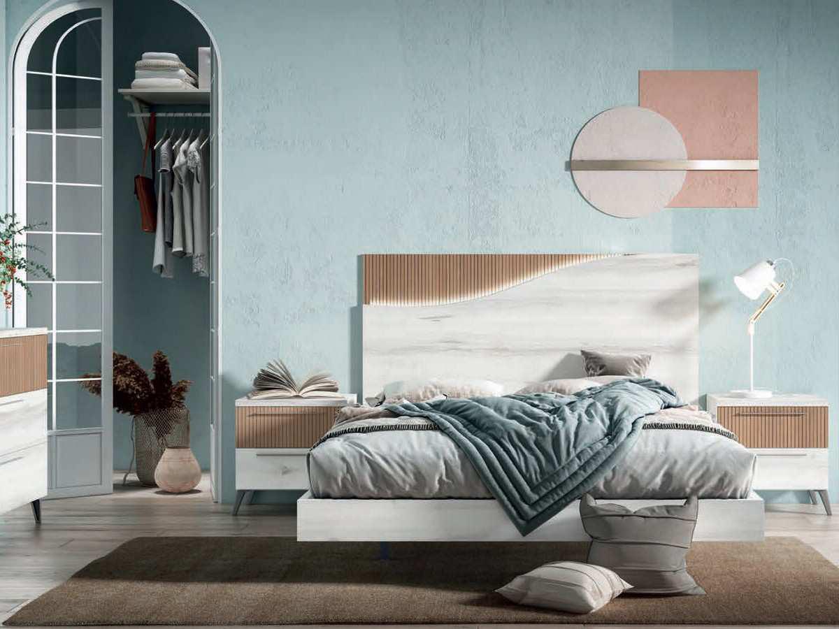 DORMITORIO-MATRIMONIO-CRETAB-01-CEOS El nuevo cabezal Kyma es la elegancia en estado puro gracias a la sutil onda acentuada por la iluminación led incluida. Un cabezal que no pasará desapercibido. El acabado Rayado en pequeñas pinceladas y el acabado Albo crea una atmósfera natural y acogedora.