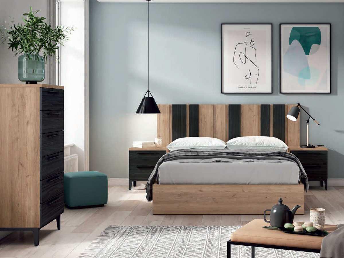 DORMITORIO-MATRIMONIO-CRETAB-15-ARIA El nuevo cabezal Ítem está disponible para camas de 90cm, 105cm, 135/140cm, 150cm y 160cm. El abanico de medidas permite que se adapte a todos los espacios y necesidades.La galería Ítem combinada en Naturale con toques en Bocamina aporta dinamismo y un aspecto industrial a la estancia.