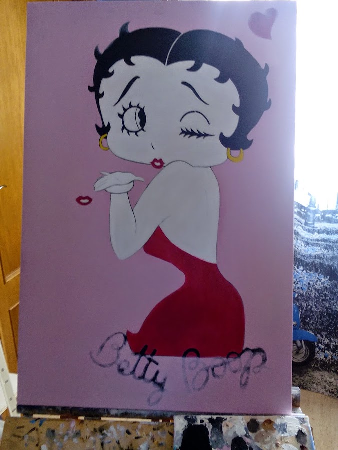 A quien no le ha gustado la espectacular betty boop,aquí estoy acabando este cuadro al oleo,me falta poquito,cuando este acabado os lo pongo.