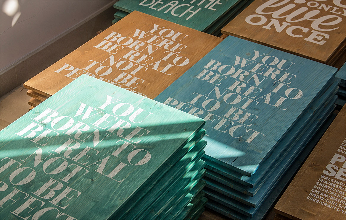 Son cuadros de madera natural tintada con frases divertidas y positivas plasmadas sobre ellos con un diseño muy bien trabajado. Ahora han añadido un formato mas pequeño que puede alegrar la decoración de cualquier escritorio.