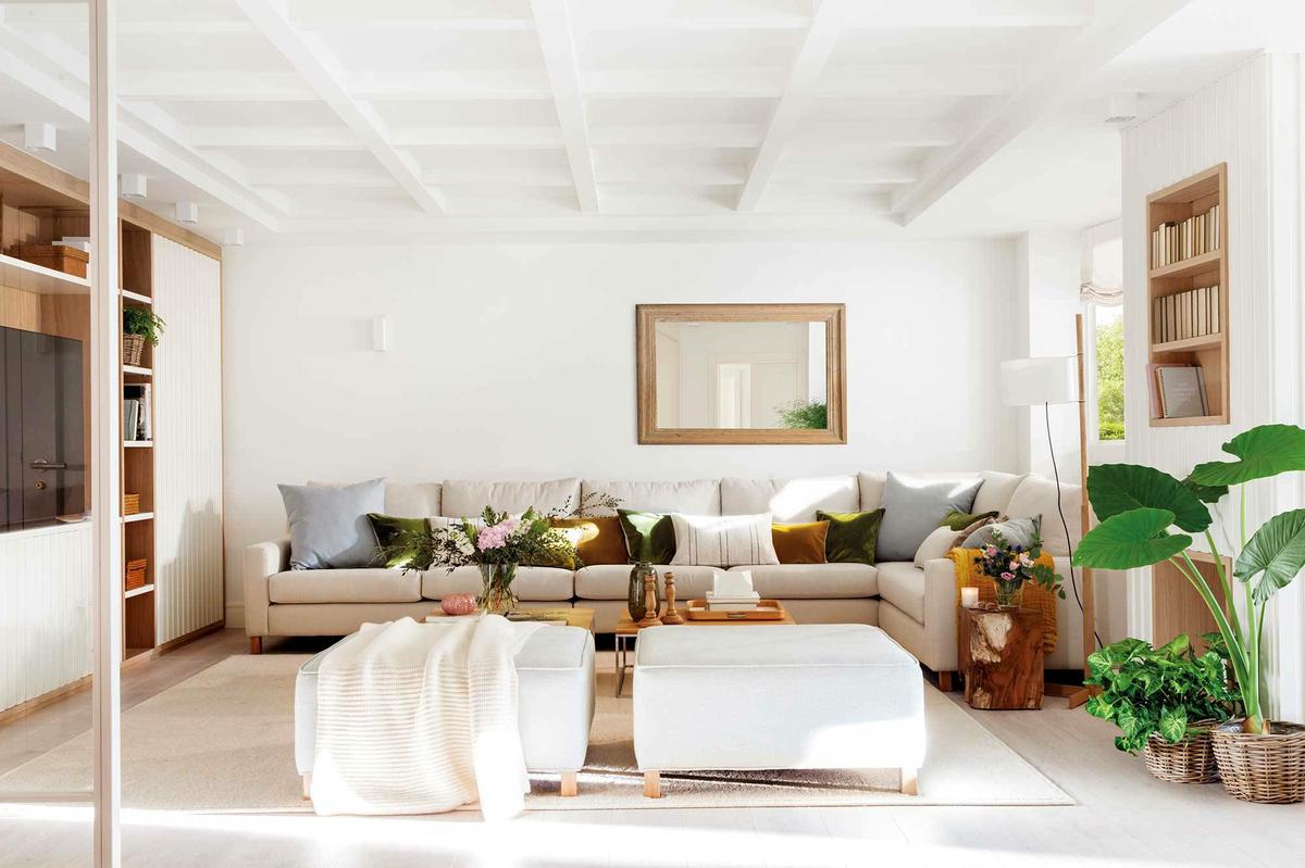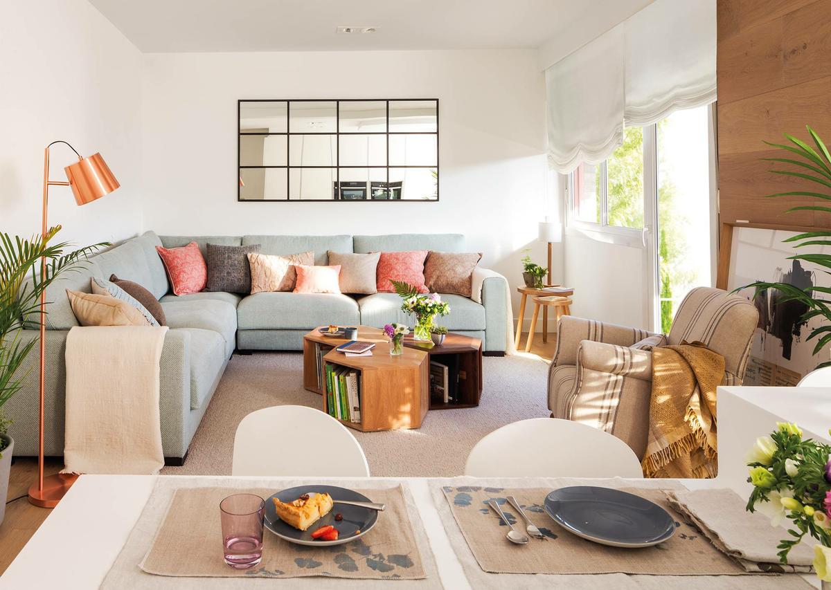 También resulta la alternativa más acertada cuando el espacio o la forma del salón no es muy uniforme. Al tener este tipo de sofá un lado mucho más corto que el otro, podrás tener mejor maniobra de ubicación.