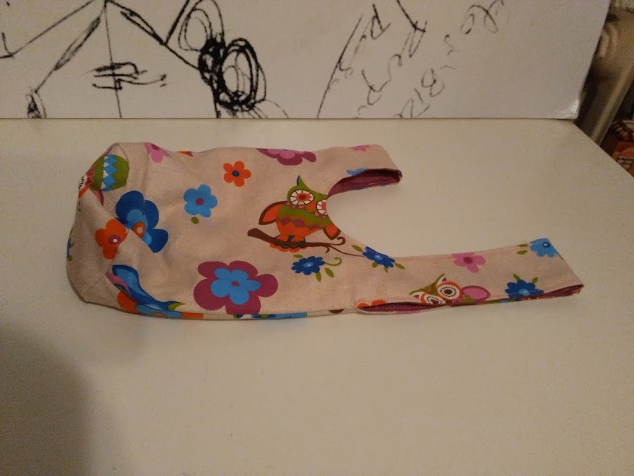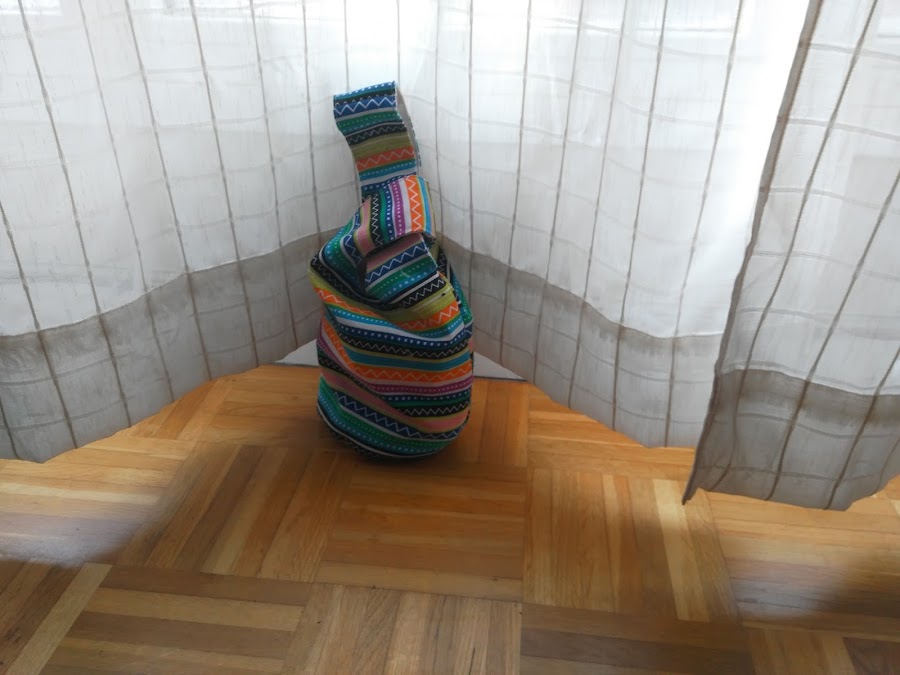 hechos con telas recicladas o compradas. Están forrados con tela de otro color .