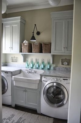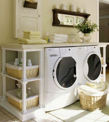 Si hay algo que echo de menos en casa, a parte de una buena terraza, claro, es tener un cuarto de lavado y plancha. La lavadora la tenemos en la cocina, la secadora, que compramos hace poco, en uno de los baños y para planchar me tengo que poner en el salón. Me encantaría poder disponer de una zona en la que lavadora, secadora, cestos para la ropa sucia y plancha compartan espacio y tenerlo todo ...