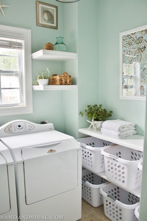 Esta es una estancia de la casa, realmente practica, a la cual no prestamos demasiada atención en cuanto a la decoración. Pero como podéis comprobar con las imágenes con un poco de diseño y armonía en los colores podemos hacer de este espacio un lugar realmente practico a la vez que atractivo. Baldas, cestas de plástico combinadas con las de mimbre, plantas y conchas o corales terminaran de completar el conjunto.