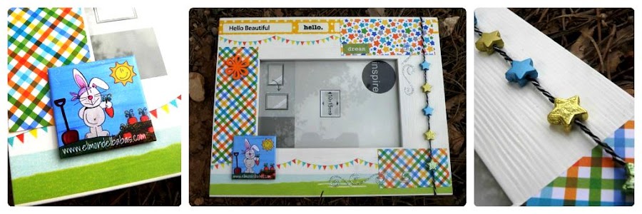 Fondo blanco y con divertidos colores animado el marco. Ah! Y nuestro conejo Yep también!!!